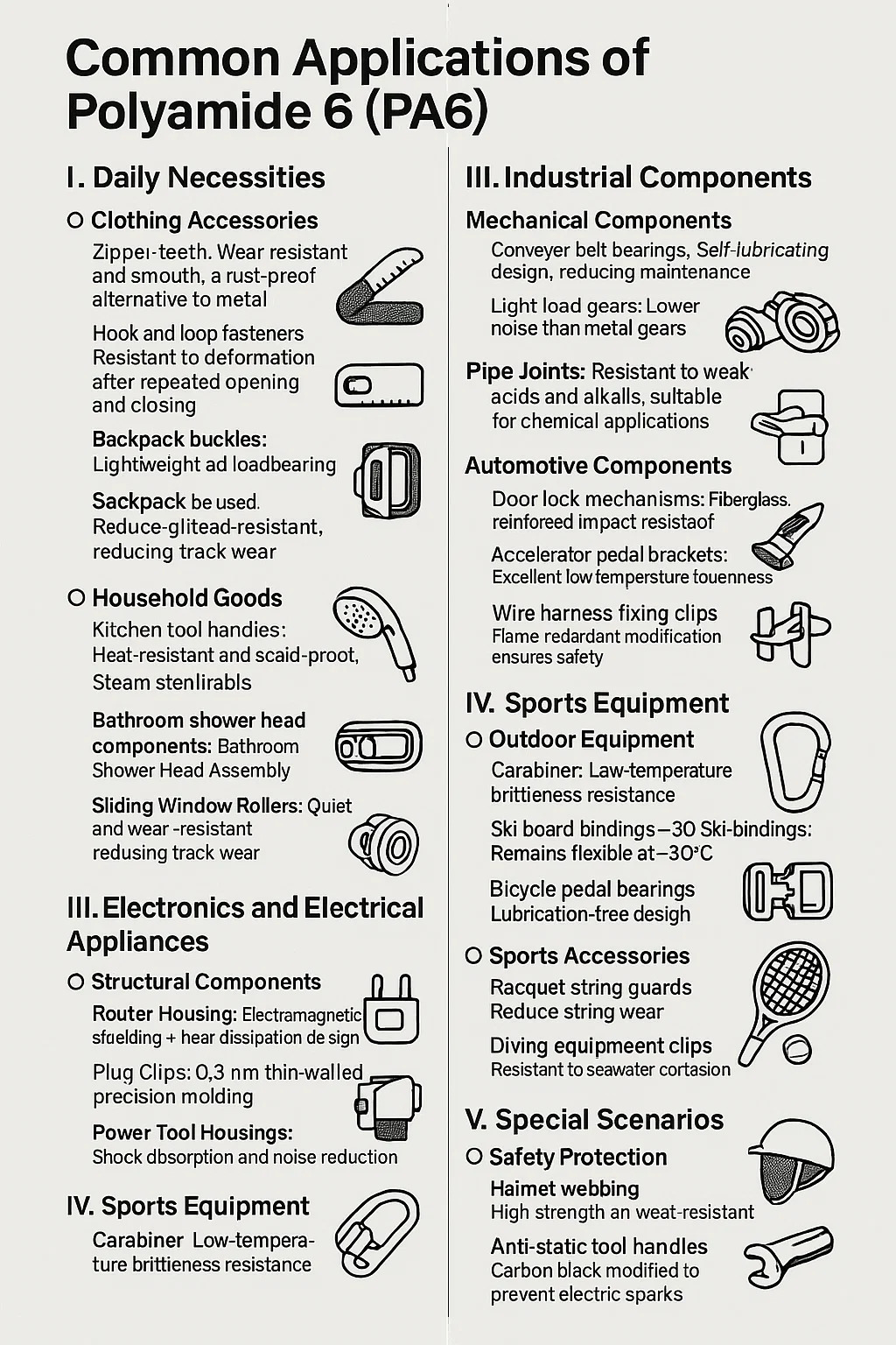 Următoarea este o introducere în aplicațiile comune ale poliamida 6 (PA6):