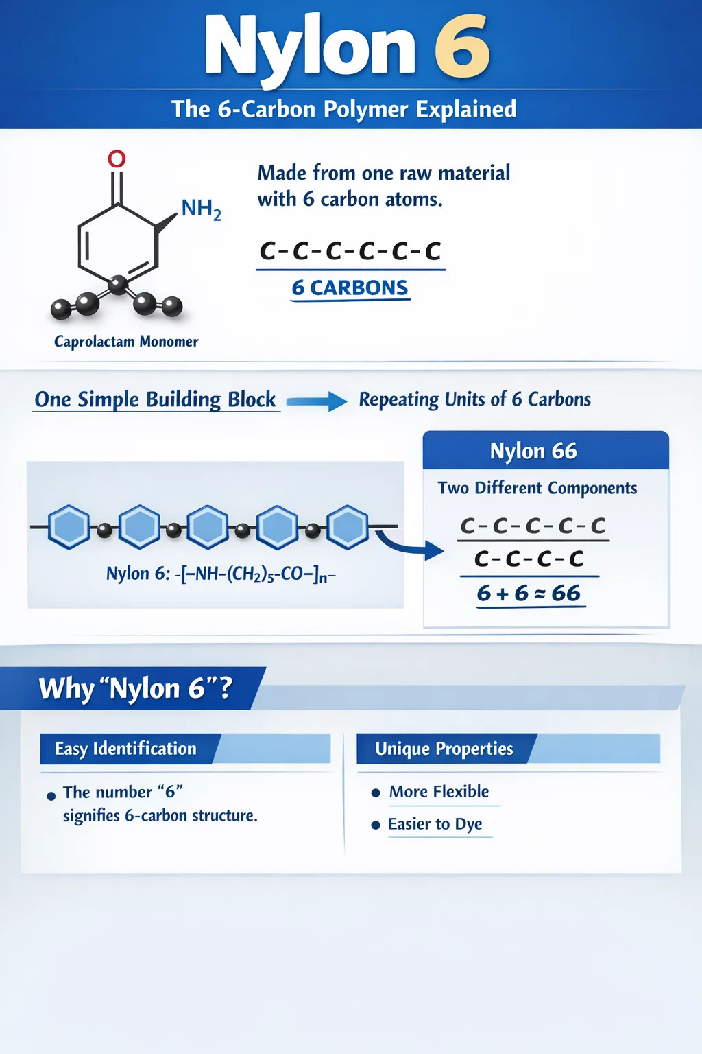 Logica de denumire: Deoarece doar acești 6 atomi de carbon sunt implicați în construcția întregului lanț lung, pentru comoditate și ușurință de memorare, oamenii de știință și producătorii l-au numit pur și simplu „Nylon 6”.